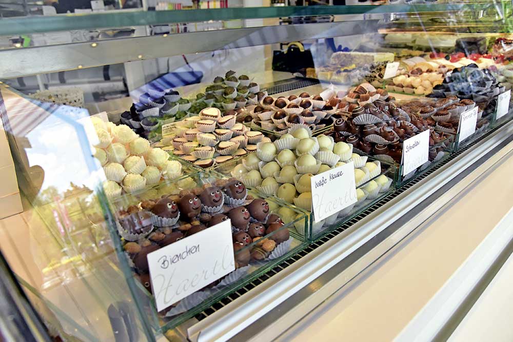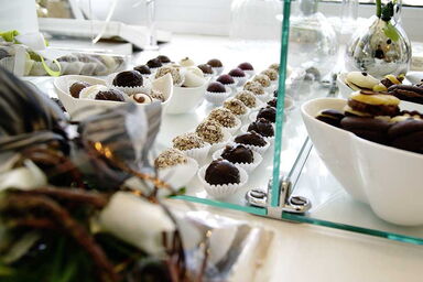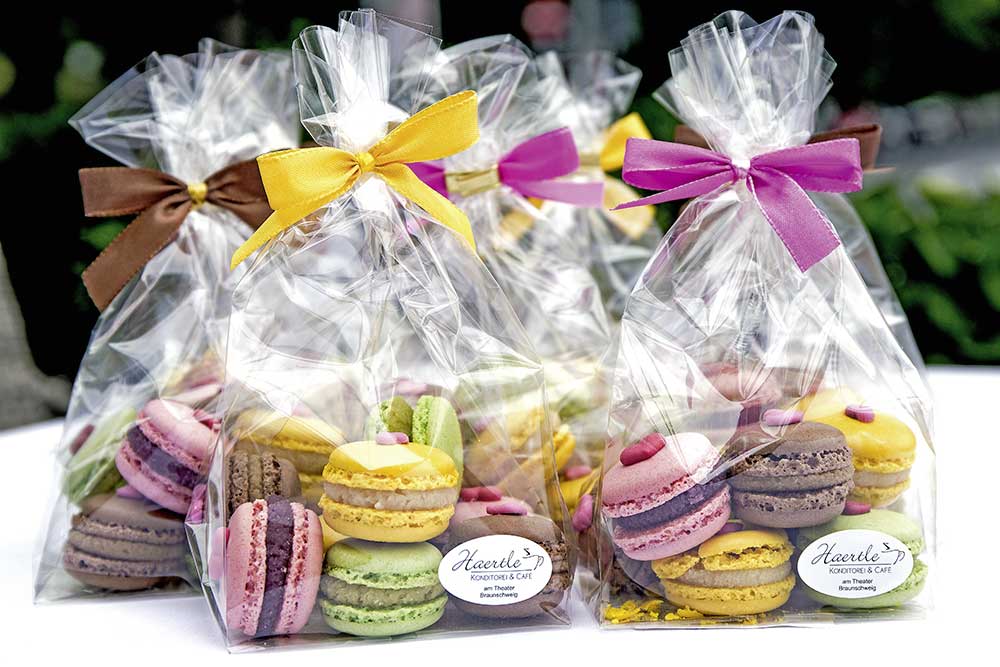 Zahlreiche dekorative Präsente mit Pralinen, Macarons oder Gebäck sind schon vorbereitet.